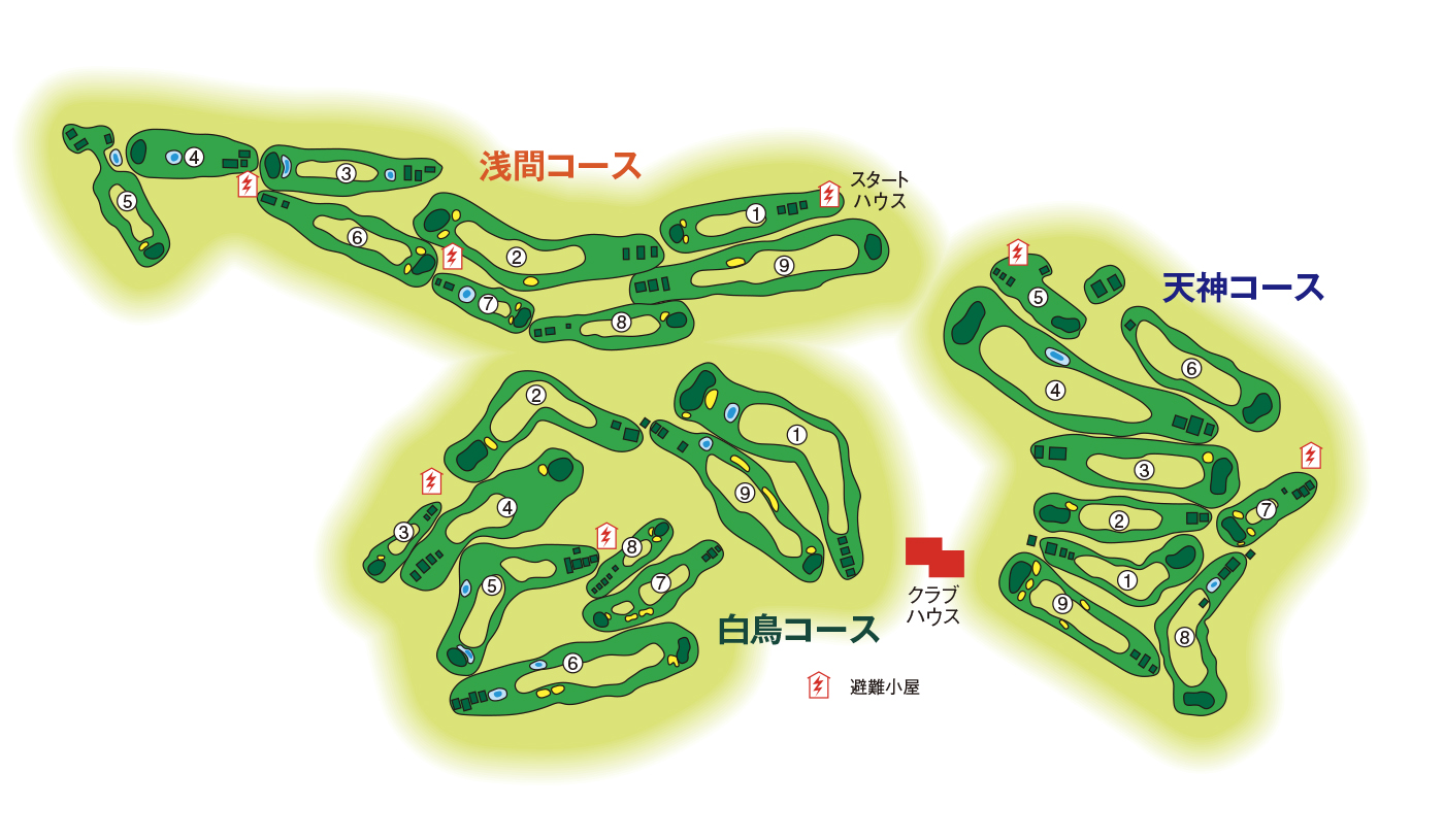 一打ごとにプレーヤーの技量を試す微妙なアンジュレーション、リンクスにも似た大きなうねり、自然美を活かし絶妙にレイアウトされた3コース27ホールは、手づくりならではのゴルフの醍醐味を十分に堪能させてくれます。