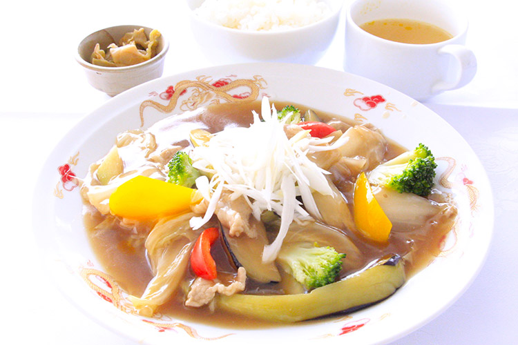 いも豚バラ肉と茄子のオイスターソース煮込み